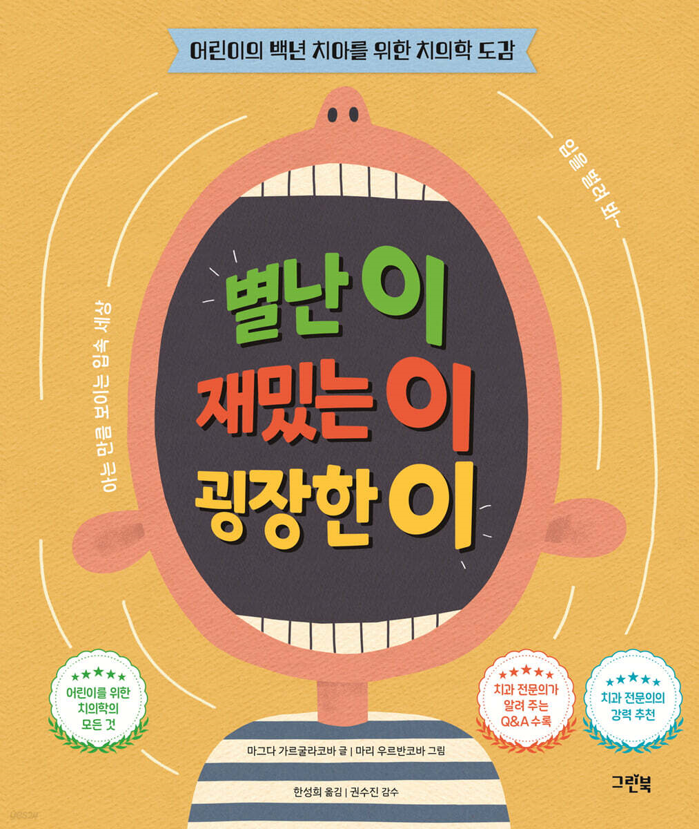 - 우리 몸에서 가장 친숙한 신체 기관인 치아를 다양한 주제와 함께 그림으로 쉽고 재미있게 소개한 책이 나왔습니다. 그린북 신간 『별난 이 재밌는 이 굉장한 이』는 치아가 언제, 어떻게 자라고, 우리에게 왜 중요한지를 아이들 눈높이에서 친근하게 알려 주는 치의학 도감입니다. 처음 나는 유치부터 평생 함께할 영구치까지 치아의 일생을 따라가며 치아 전반의 이야기를 풍부하게 다룹니다.